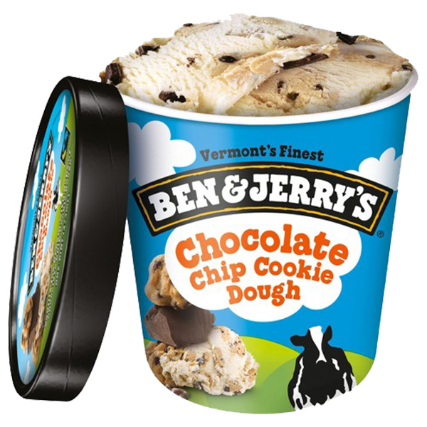 Vanille-Eiscreme mit riesen Cookieteig-Stücken und leckeren kakaohaltigen Bits