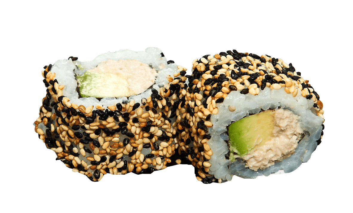 mit gekochtem Thunfisch und Avocado, außen mit Sesam